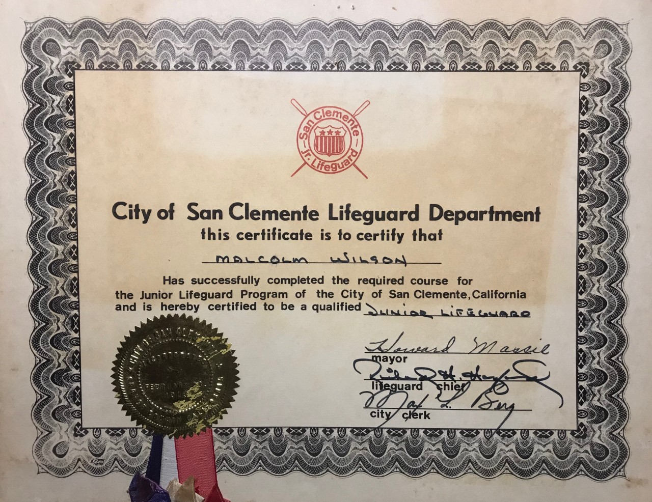 My brother Malcolm managed to save an article from a local paper called the “Independent” written by Col. Aaron Bank on August 4th 1966. The article was titled “Boys Between 10-14 Eligible to Train” and described the ‘architects’ and origins of the Junior Guard program in San Clemente. It’s amazing and satisfying at the same time how much Col. Bank’s description of the Junior Lifeguard program and my own personal experiences and memories match. (Wilson)
