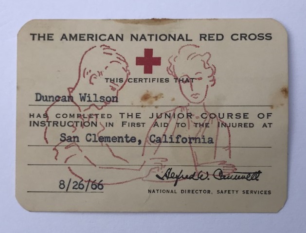 After looking through my scrap book I found my first aid card from the American National Red Cross Junior Course we completed during the program. I remember first aid being a big part of our instruction. (Wilson)