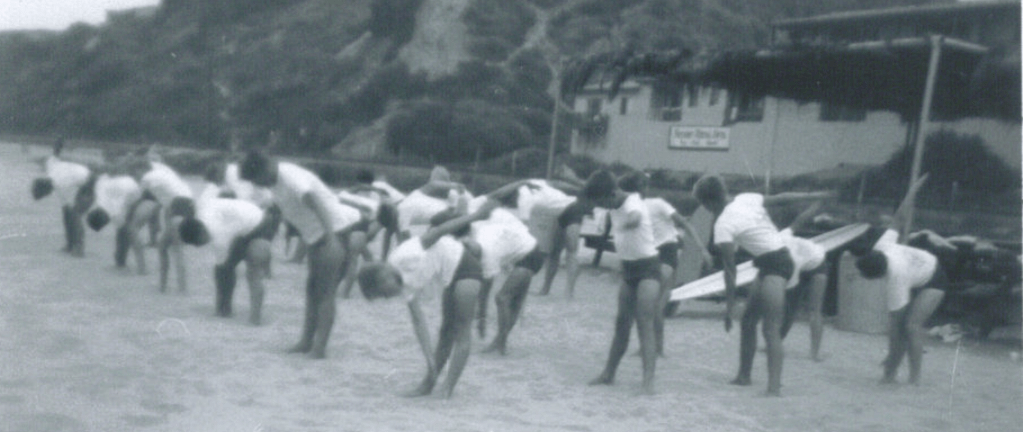 “Under the direction of Chief Dick Hazard, the San Clemente Life Saving Department is conducting intensive courses on “Ocean Aquatics” for San Clemente’s finest and most famous playground—the beach. The equipment and instructors are furnished by the Life Guard Department“
